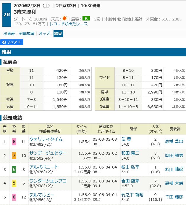 2/8(土)京都3レース