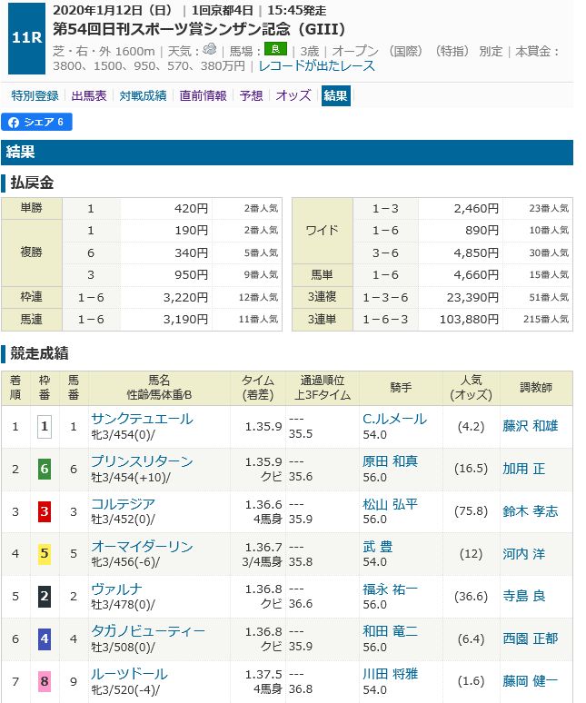 1レースしか当たらず-23,000円ですが( ;∀;)