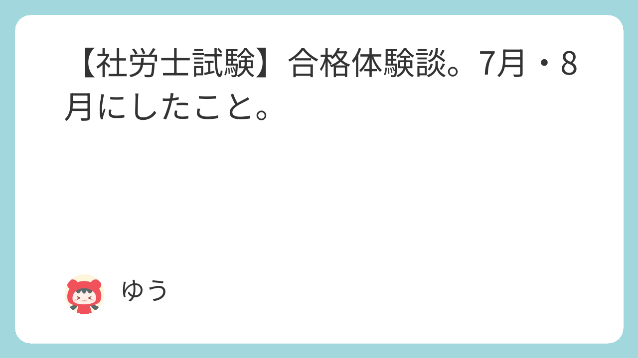 社労士試験大好きなゆうよ。今回は毎年択一でほげったことがないわたくしが7月・8月に何してたかを詳しく解説するわよ。