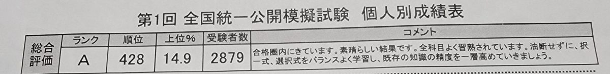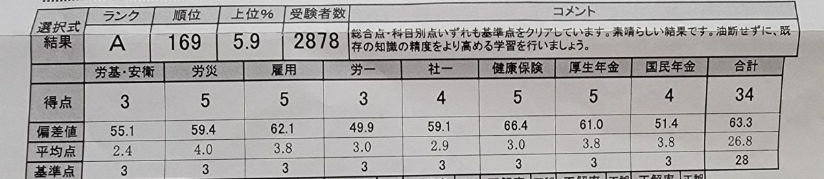 そんな中、大原さんの社労士模試の結果が届きましたので見てみましょう。