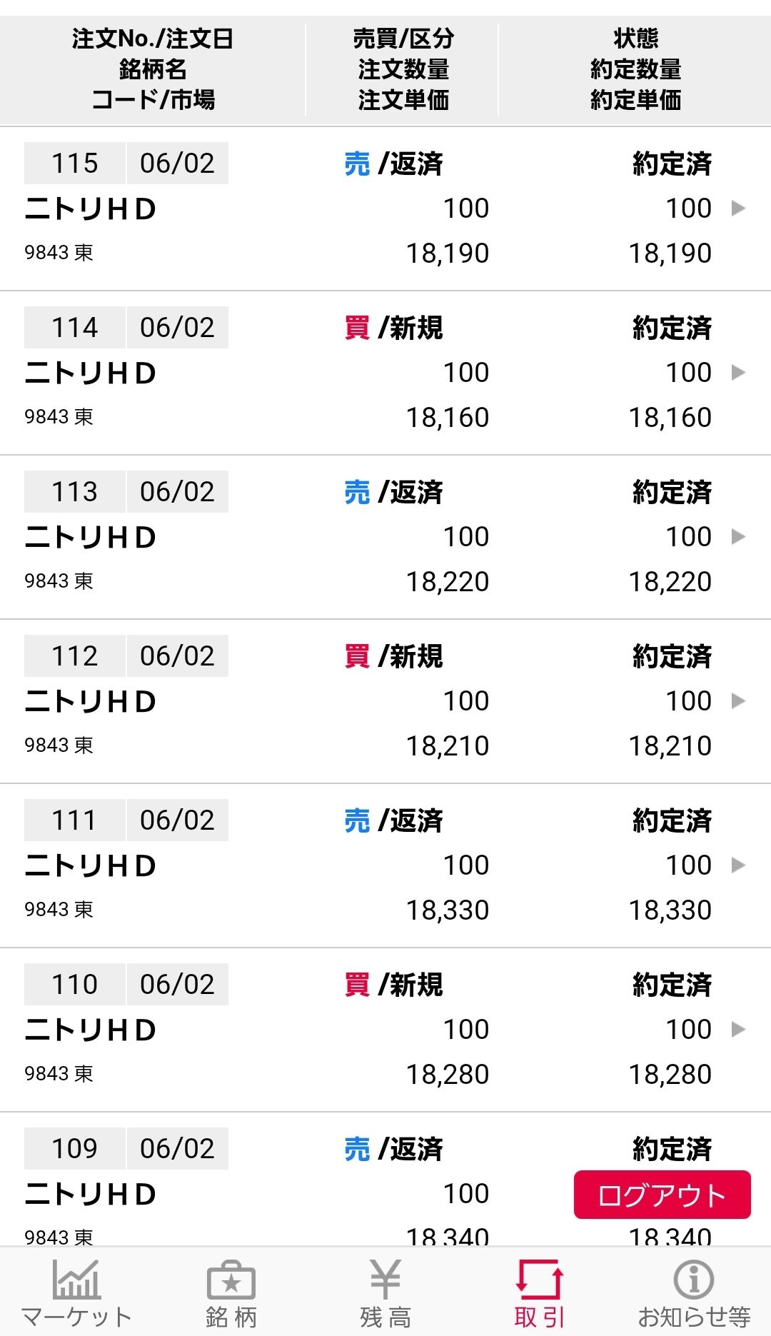 ニトリはデイトレには最適ですね!必ず反発してくれます。