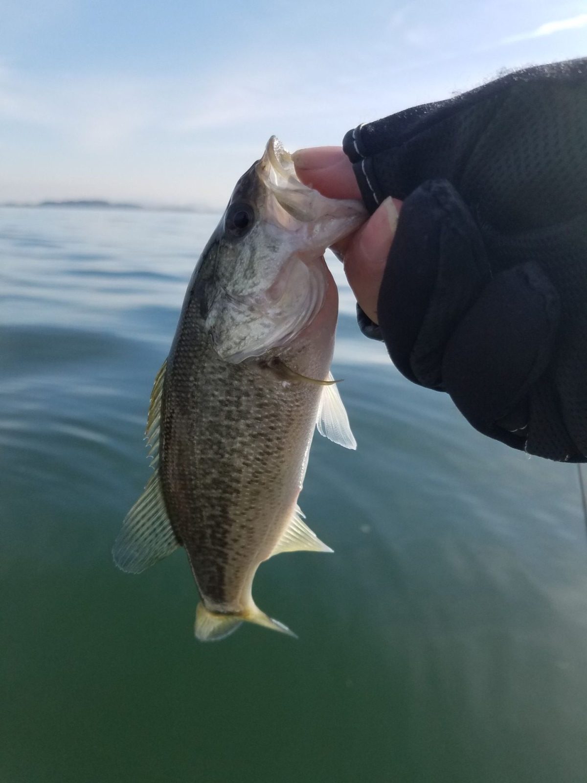 ボート屋のおっちゃんが言うには沖の水深4m付近でウィードが残ってるところが釣れるというので朝一はそちらに。たしかにボートがいっぱいおる。